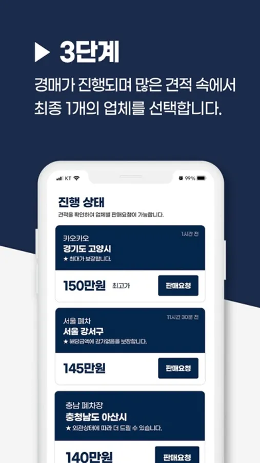 차량의 입찰, 견적, 입고, 말소, 입금 등의 상황을 카카오톡 알림톡을 통해 실시간 제공되고있습니다.