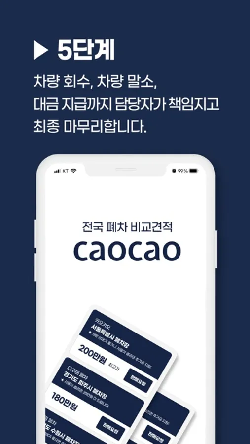 ■ 카오카오는, 차량을 앱으로 등록 인허가된 폐차장을 직접 선택하여 능동적이고 안전한 폐차거래를 제공