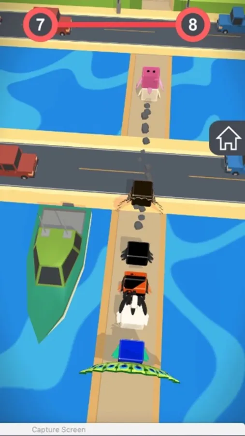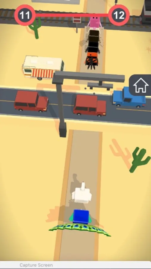 hold to launch the birds across the road and avoid cars, trains and trucks, help them to reach the farm safely without loosing anyone.
