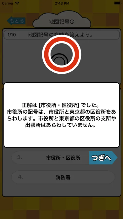 小学生の段階で全て覚えていたら十分すぎる地図記号学習アプリです。