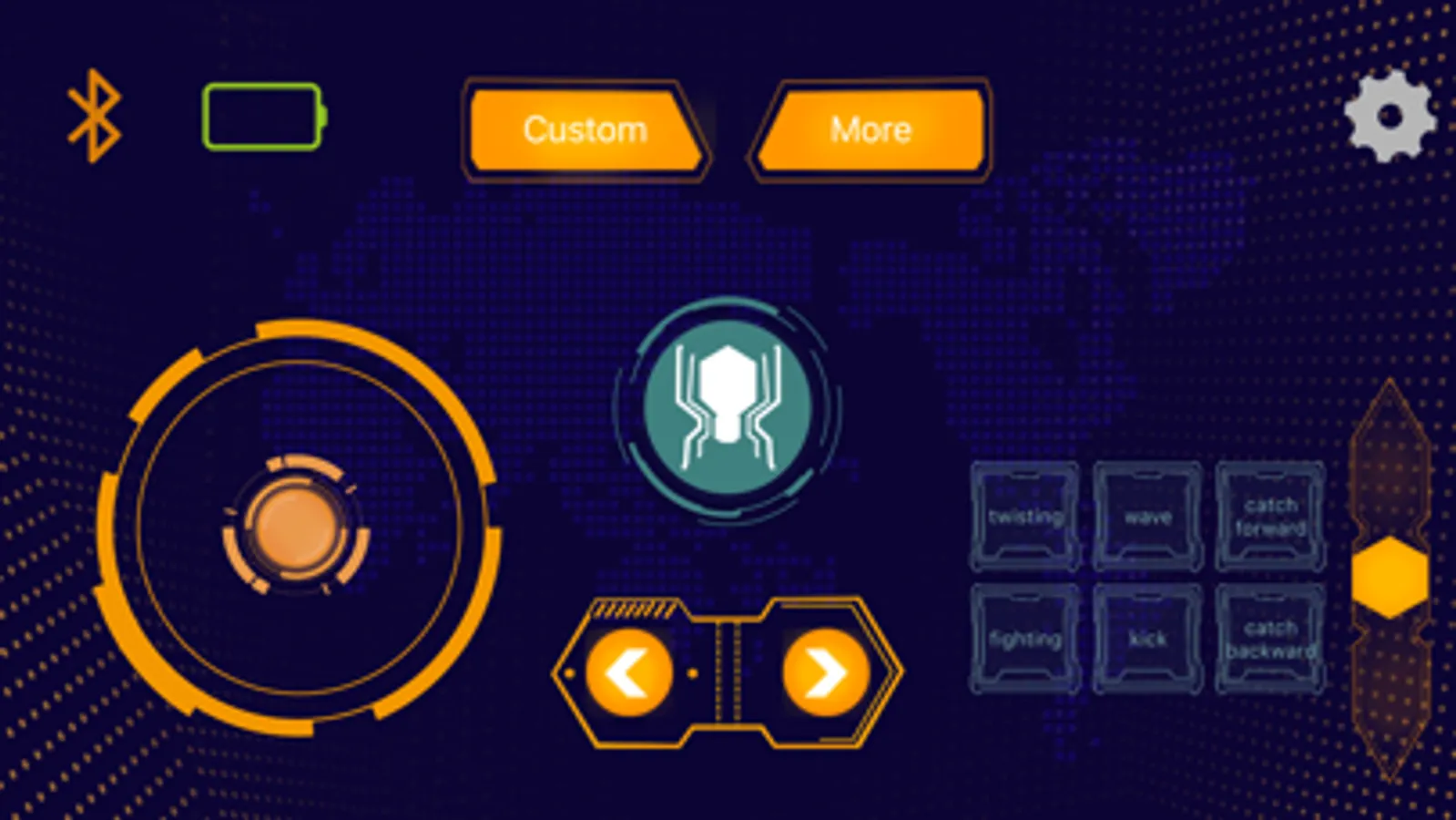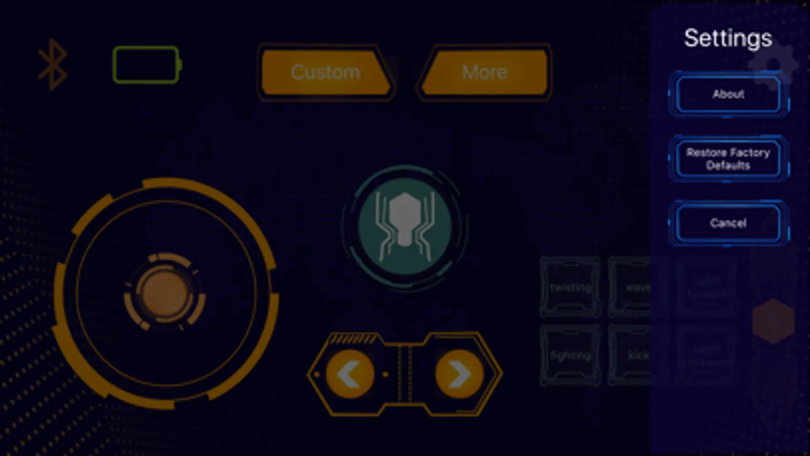 After opening the app, select Bluetooth to connect to robot, and you can easily control it after the connection is successful. You can control the hexapod robot to turn left and right, left and right sides, and can do things like twisting, beckoning, fighting, etc. You can also customize the add action.