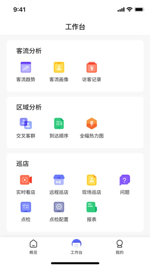 2)门店数据化:围绕“人、货、场”三个维度,将门店数字化的数据进行统计,并以可视化图表展现,提供各种运营管理层面的分析及决策依据,如用户画像、客流轨迹、商品审计及门店客群分析等