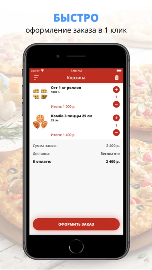 Скачивайте наше приложение, оформляйте заказ и наслаждайтесь любимой едой, где бы Вы ни были! Приятного аппетита!