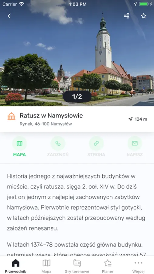 “District of Namysłów Mobile Guide” also provides the latest news from the region and interesting articles on the local affairs. Some elements of the app can be added to your planner so that they are available at any time, without the need to browse through all data.