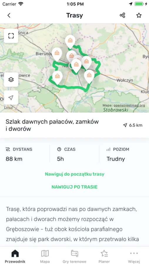 The mobile guide to the district of Namysłów has six thematic routes which will take you through the main places of interest in the region, such as the Nature Lovers’ Route or the Wooden Churches Route. The descriptions are accompanied by GPX files which make it easy to reach the places of interest and provide some key information on the route and the local historic objects.