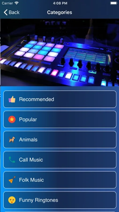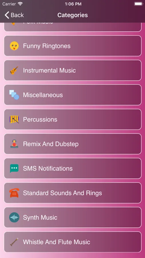 The app includes more than 500 ringtones of the following 14 categories: