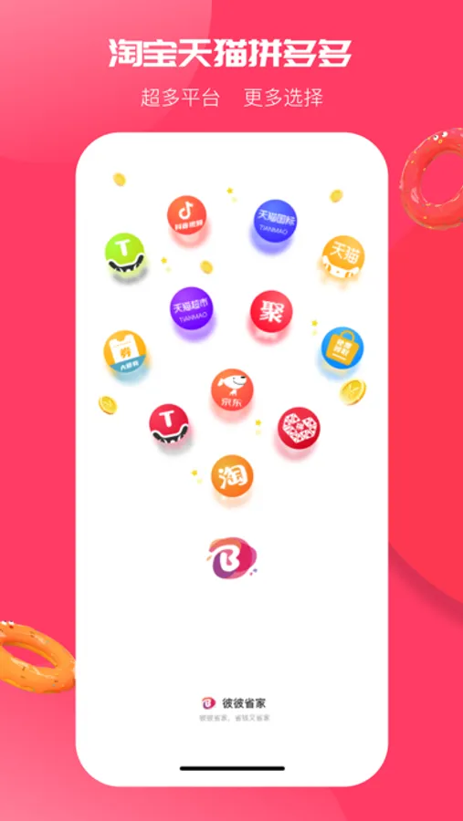 彼彼省家致力以“省心省钱,就来彼彼”的品牌价值理念,对接了像淘宝、天猫、拼多多、京东、苏宁易购、唯品会、饿了么、口碑等一线电商购物平台以及线下实体商家,让消费者一键搜索优惠购物,开启网购省赚新方式。以及自营彼彼商城和联联农源农副产品板块。