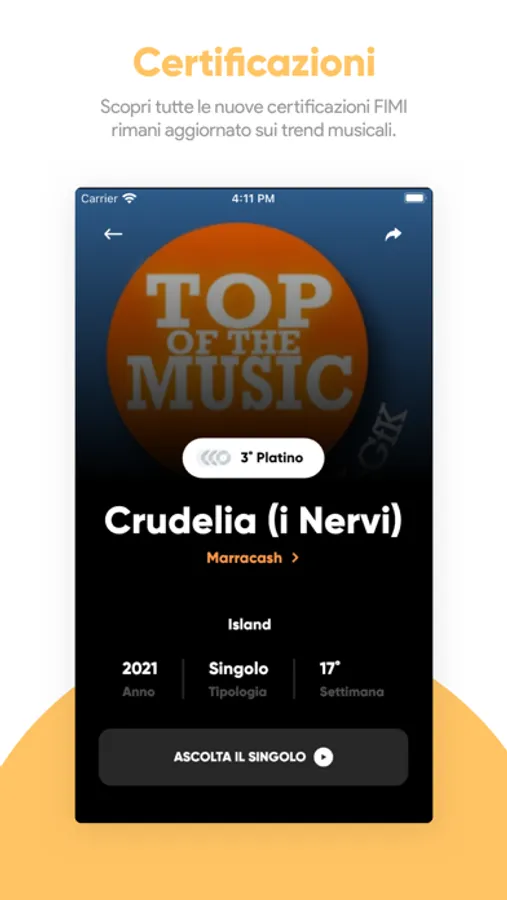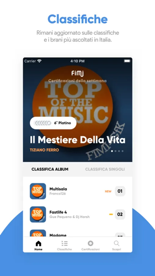 Con l'app di FIMI rimarrai sempre aggiornato su nuove certificazioni ed aggiornamenti di classifiche per album e singoli.