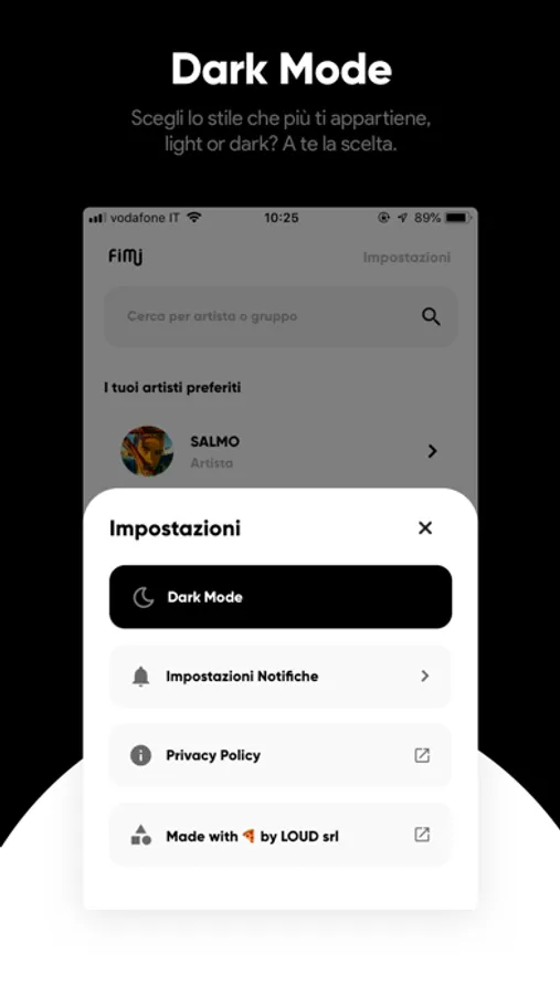 - Condivisione diretta di: Singoli, Album o Artisti sulle più diffuse piattaforme social tra le quali: Instagram Stories, WhatsApp, Twitter e molte altre.