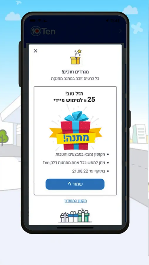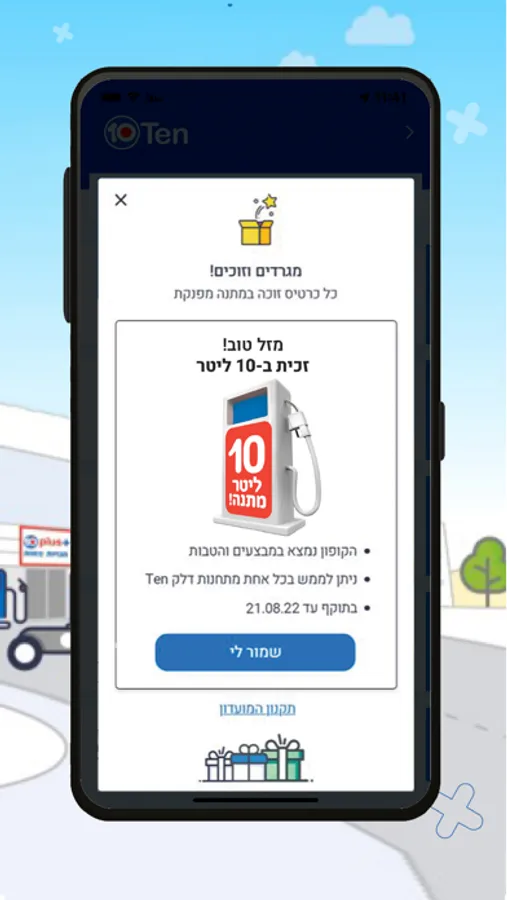 אז למה אתם מחכים? הורידו עוד היום את אפליקציית התדלוק הייחודית של Ten והתחילו להנות משקיפות והטבות בכל הנוגע למחירי הדלק שאתם משלמים, ומהנחות ומבצעים ברכישת מוצרים בתחנות הדלק Ten.