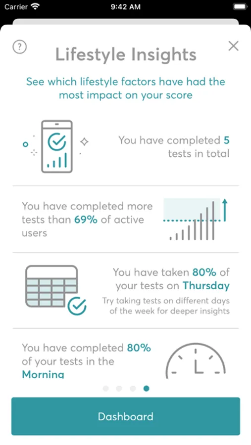 The app provides an objective measure of your cognitive performance with a simple test that takes no more than five minutes. It relies on millions of years of evolution and your powerful ability to recognise animals in a fraction of a second.