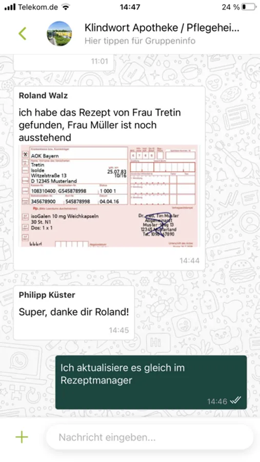 Doc-Chat: Mit der Integration der Doc-Chat App in die Team App haben Sie nun auch die digitale Kommunikation in Ihrer Apotheke in der Team App. Profitieren Sie u.a. von Push-Benachrichtigungen, Aufnahme und Versand von Bildern und der Gruppenfunktion!