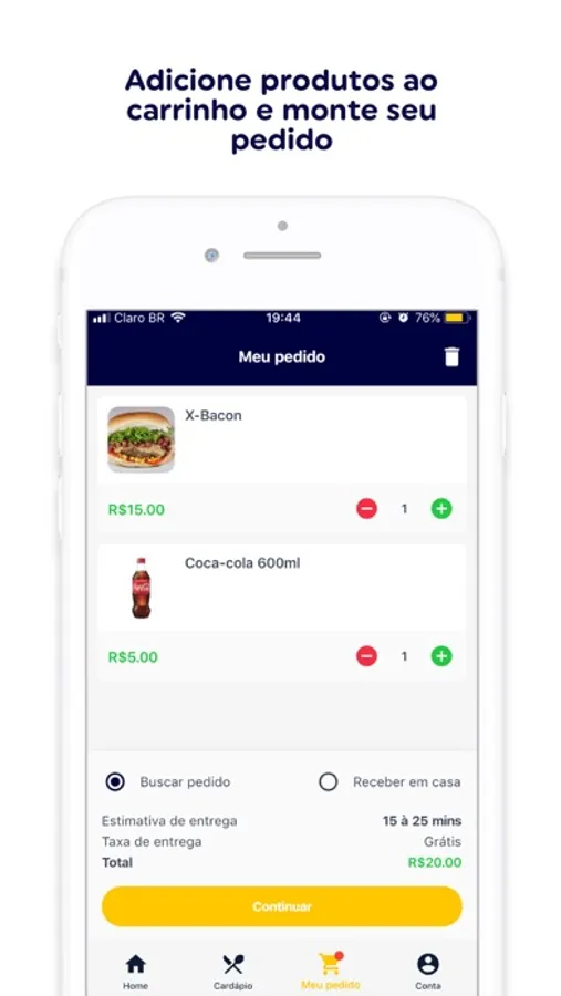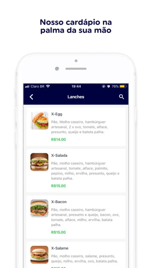 No app, você encontra de forma rápida o cardápio completo e ainda pode utilizar a ferramenta de busca para localizar diretamente os produtos que você deseja.
