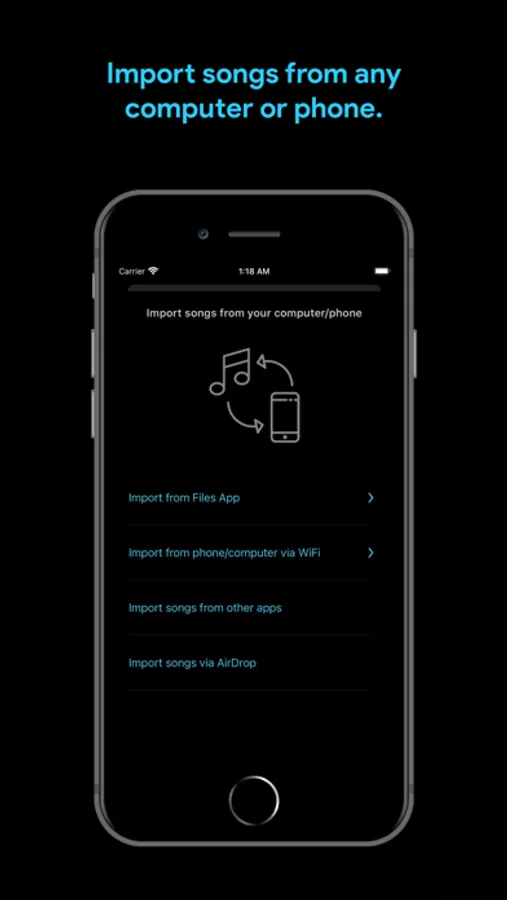 8DMusic also works with audio/songs you already own. You can import your audio files into the app using 3 channels: