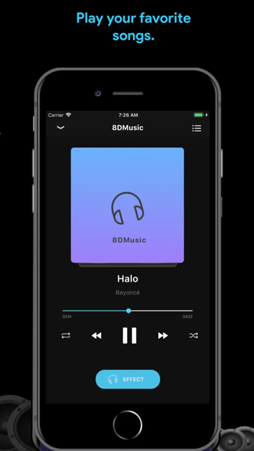 Once your songs are loaded into the app, you can immediately start listening to them with the 8D effect.