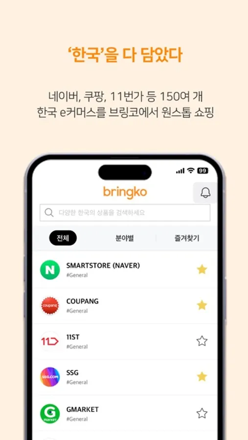 - 한국 온라인 쇼핑몰에 계정이 없더라도 브링코 앱으로 한국의 거의 모든 온라인 쇼핑몰을 이용하실 수 있습니다.