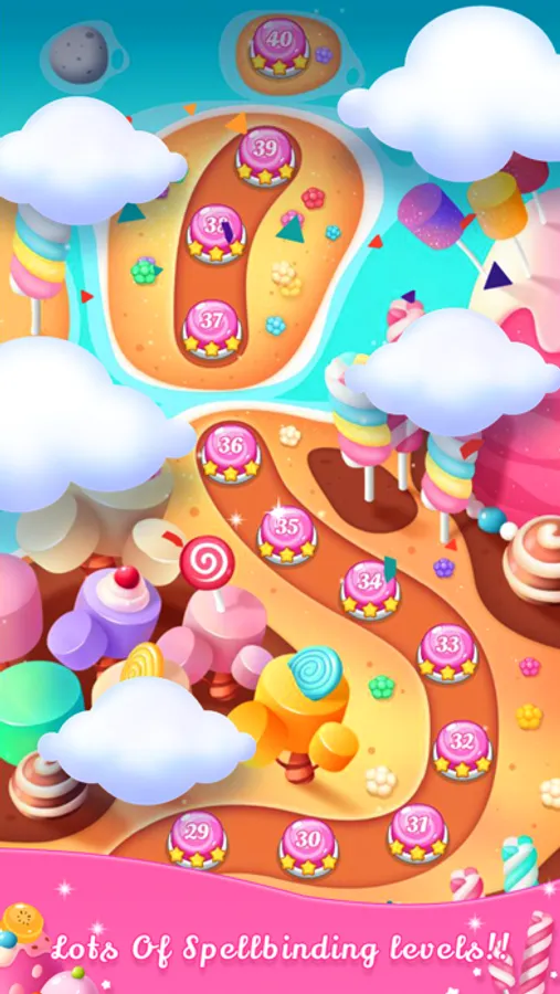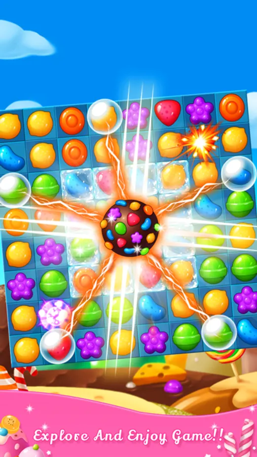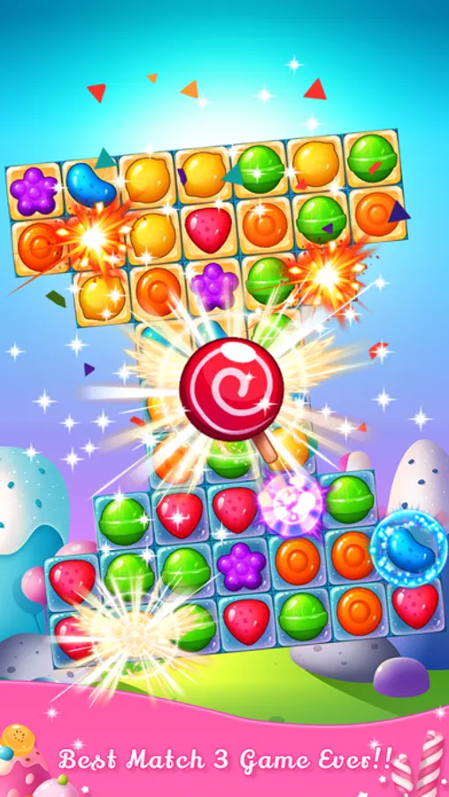 Welcome to the story of sweet candies!? There are so much delicious candies while exploring the addictive candy game. Match and crush your way through hundreds of sweet levels in this delicious puzzle adventure. Reach the goal before the moves run out! These amazingly tasty puzzles are ready to satisfy your sweet teeth!