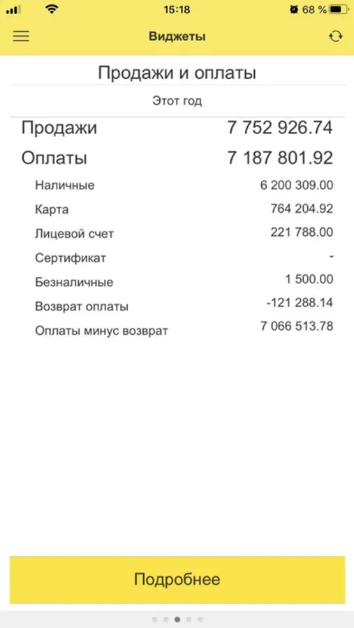 - просмотр информации по кассовой выручке, а также подробный отчет по выручке за любой период