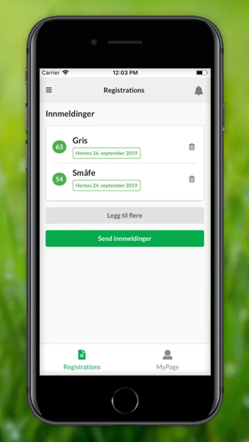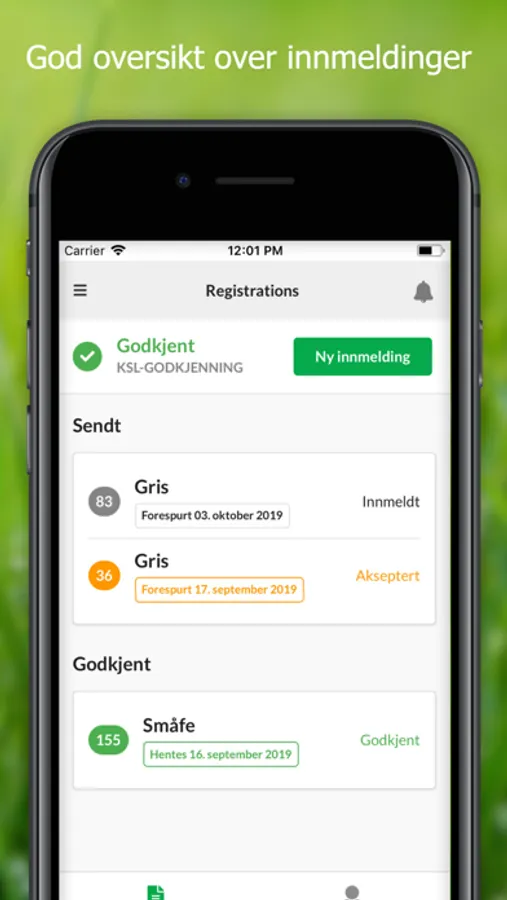 - Sende innmeldinger om slakt på de tre dyreslagene - storfe, sau og gris