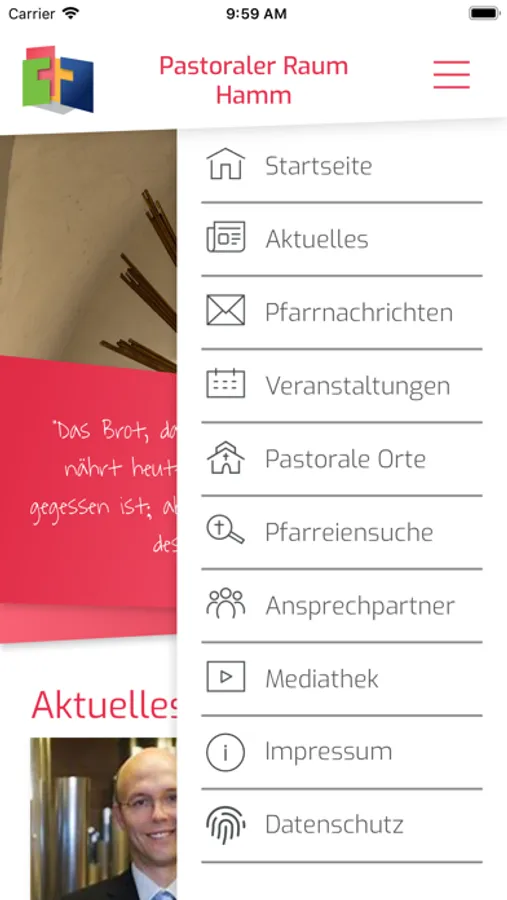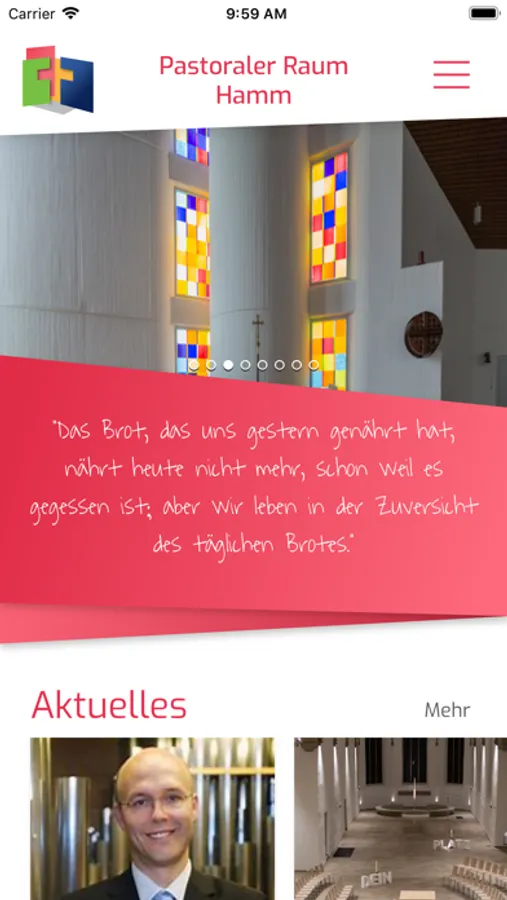 Die wichtigsten Infos rund um den Pastoralen Raum Hamm immer schnell erreichbar: Über unsere App halten wir Sie mit neuen Schlagzeilen und kommenden Veranstaltungen auf dem Laufenden. Laden Sie per Knopfdruck die aktuellen Pfarrnachrichten der einzelnen Pfarreien herunter. Wer einen Kontakt oder eine Adresse sucht, wird unter den Ansprechpartnern und unseren pastoralen Orten fündig. Wer etwas mehr Zeit zum Stöbern hat, findet in unserer Mediathek Videos zu diversen Themen.