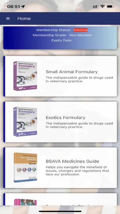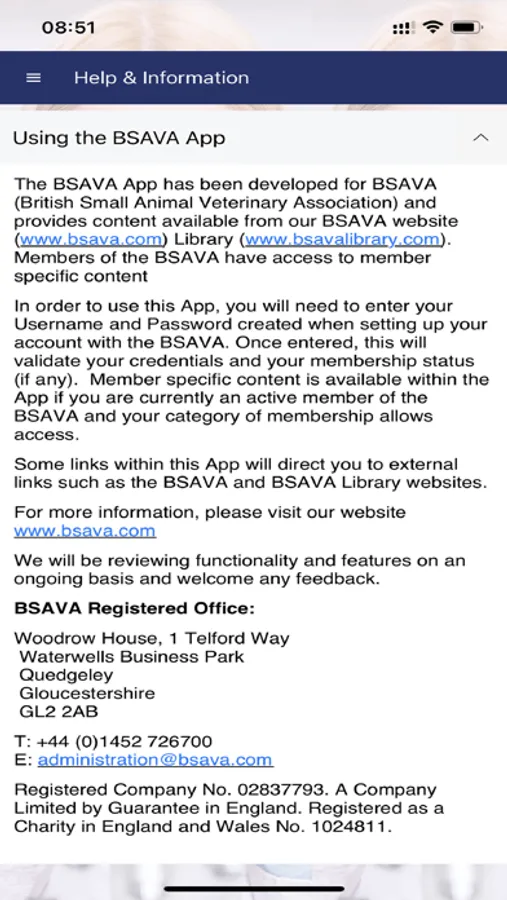 In order to use this app you will need to enter your email address and password used when registering with the BSAVA website. Member specific content is only available if you are currently an active member of the BSAVA and your membership category allows access.