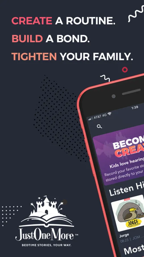 Just-One-More helps you to create, maintain and nurture the precious bond you share with your favorite little human. Create and listen to magical audio stories together as a family, writing memories that will last a lifetime.