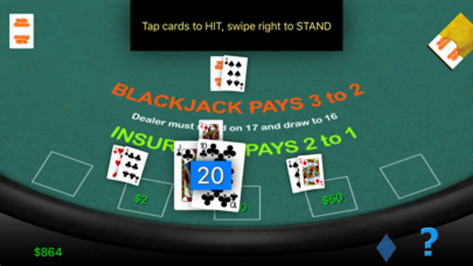 Play 21 is a multi-seat blackjack game with more than a dozen user configurable options.