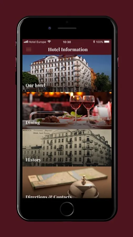 Welcome to the official mobile app of Hotel Europe Minsk! Enhance your experience with us by using your personal all-in-one pocket concierge to discover the full array of hotel facilities and services even before your visit. Enjoy this seamless communication channel and keep up with the upcoming events and offers while holding everything at the palm of your hand.