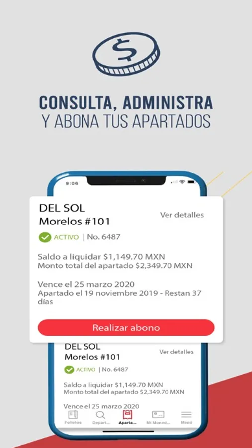 Revisa el detalle de tus apartados en cualquier momento y realiza tus abonos de forma segura, rápida y sencilla