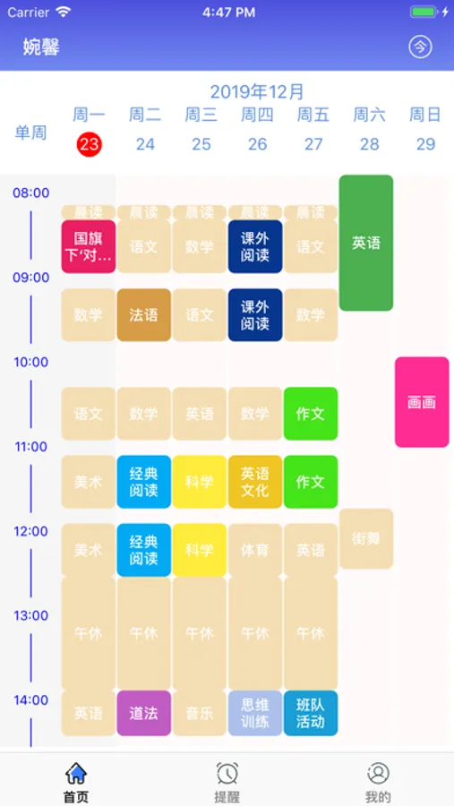 一款供家长和孩子管理自己课表的应用,可以自定义课表包括(颜色标记,课时设置,放假标记,等等),还可以互相分享课表。