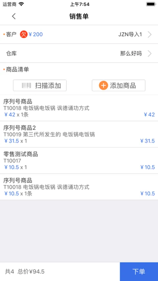 销售管理:支持查询历史售价,销售开单、退货、换货等功能,按PC端制定策略获取价格信息