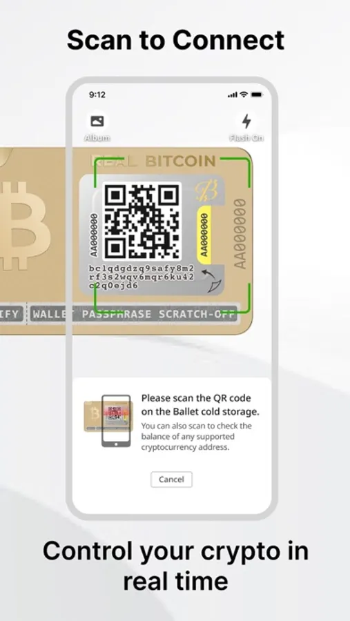 Scan the QR code on your Ballet product to start using the app. There is no need to register an account or go through KYC procedures.