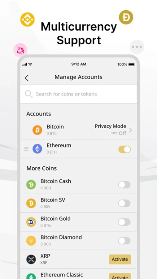 The app allows you to activate use of multiple cryptocurrencies on your Ballet product, allowing you to deposit, store, and send more than 50 kinds of cryptocurrencies. Please note: some cryptocurrency activations may require an additional fee.