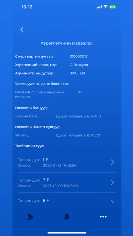 • Дансны үлдэгдэл, төлбөрийн түүхээ харах