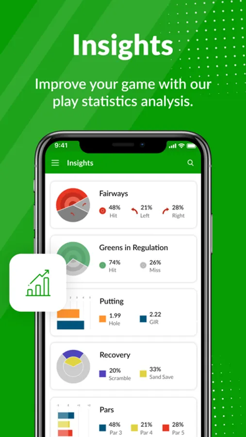 Our advanced golf stats include fairways hit, greens in regulation, putting and scoring insights, recoveries and sand saves. It also tracks your games and bets wins and losses. All packaged in a nice interface with groupings by course and dates. Quick access to your latest golf round or pick a round. View golf statistics trends over time.