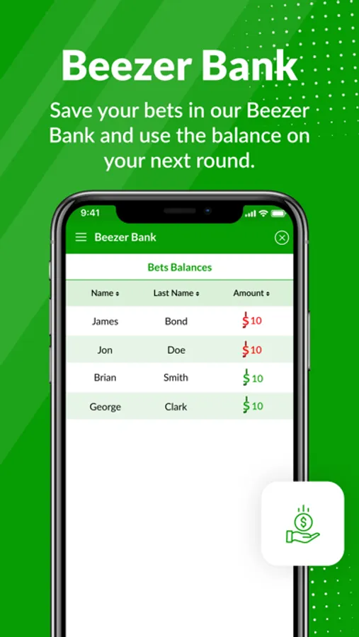 We use Beezer Dollars to keep track of bets —pay with dollars, pounds, quarters or beers. And if you are low in cash or don’t have time for the beer, use our Beezer Bank to save your bets, settle them anytime. This unique feature will make settling golf bets a cinch.