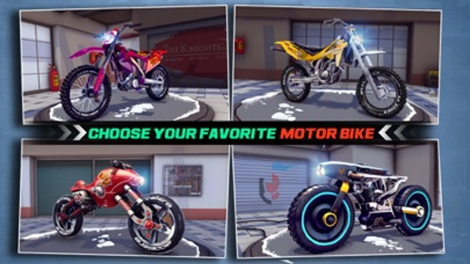 Select your preferred bike rider from a roster of characters & choose your favorite stunt bike from the garage. Race through a variety of challenging courses with obstacles and hurdles. Navigate through tricky tracks and perform impressive stunts and flips. Unlock new characters and new bikes as you progress in the bike stunt driving game. Complete all the challenges in one mode to move on to the next thrilling game modes.