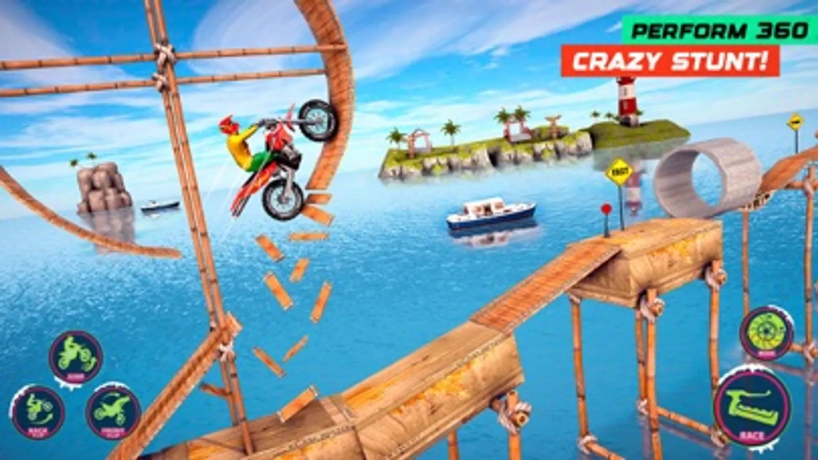 FREE RIDE MODE: Enjoy the experience of bike riding through various tracks and environments such as sky-high tracks, stonehenge and island environments.