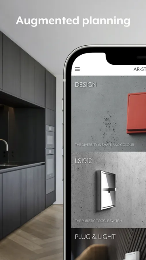 The JUNG AR Studio app is a creative planning tool which you can use to place JUNG products virtually inside your own four walls. Surfaces, materials and colours can be experienced in a photorealistic display. At any time and wherever you are, you can use this app for the optimum display of JUNG switch ranges as well as materials and colour variants in the room and thus create the perfect interior design concept.