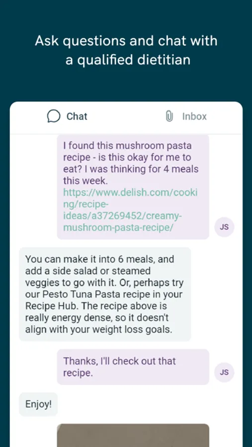 - Message photos of your food, food labels, or recipes to get feedback from Sophus dietitians
