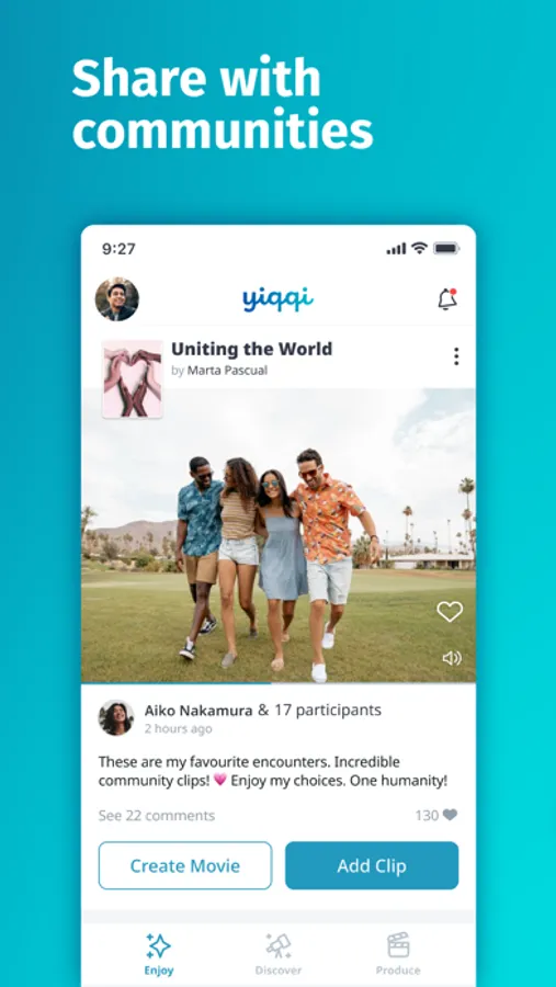 yiqqi is for everyone. It is a whole new way of collaborating online to create pro videos, together, that get noticed and drive impact through an engaged and active network of users and creators. yiqqi gives power back to communities. It unites voices around stories that matter.
