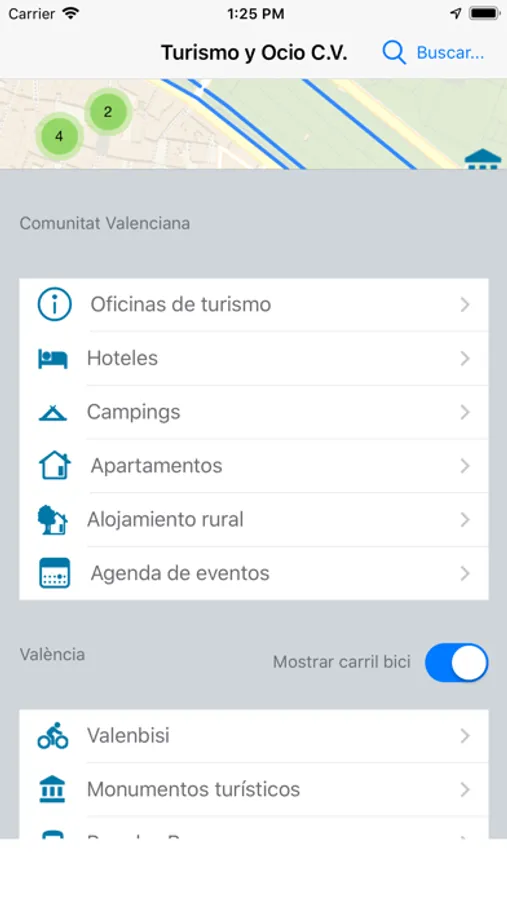 Whether you live in the Valencian community or if you come for pleasure, tourism or work, this application allows you to instantly discover the location and information of all kinds of cultural and leisure events, hotels, campsites, rural houses, tourist offices, apartments ..., from all Valencian Community.