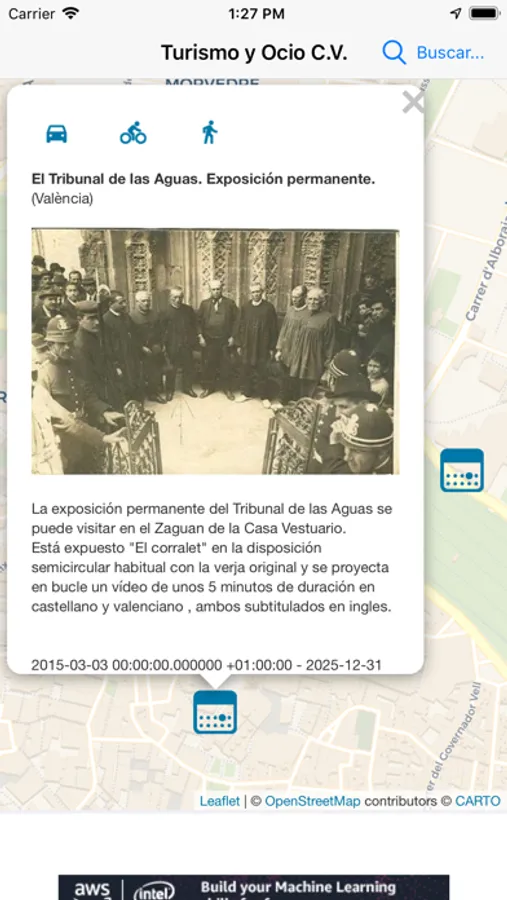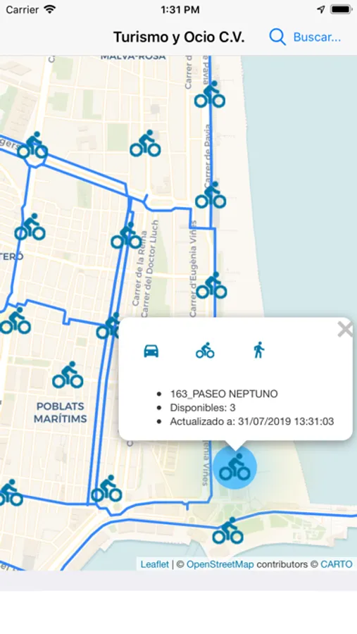 Similarly, get instantly the location and information of monuments and tourist buildings, bike lanes, Valenbisi stations, bus stops and parking lots in the city of Valencia.