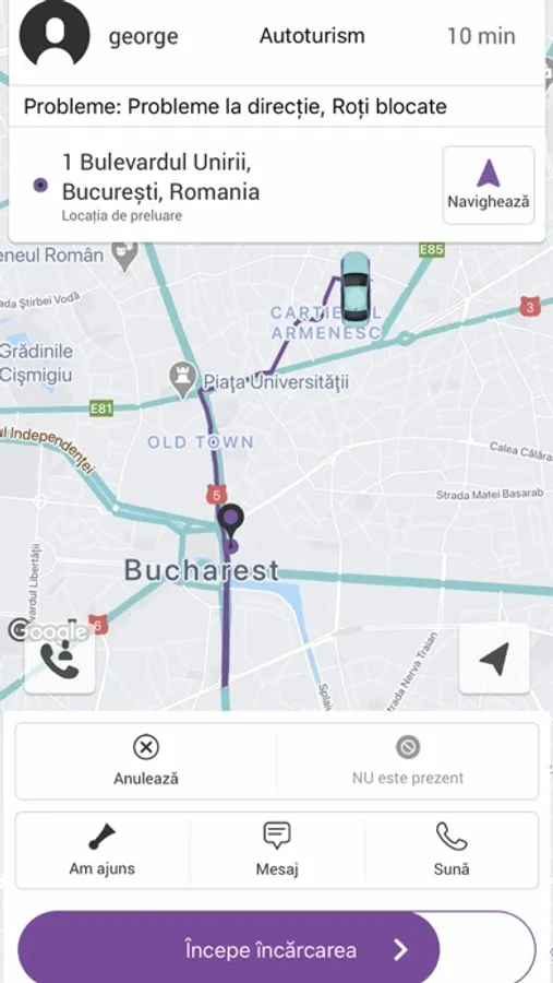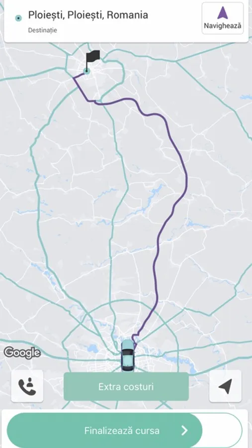 5. GPS-ul aplicației urmărește traseul parcurs și contorizează kilometri de la plecarea spre client până la preluare și transportul efectiv la destinație. Prețul cursei este actualizat cu aceste date.