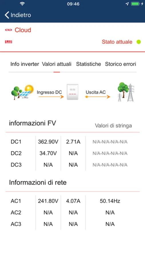 L'applicazione gratuita fornisce una panoramica sui valori di conversione dell'inverter, statistiche e comparazioni su dati energetici, funzioni di notifica allarmi e possibili soluzioni.
