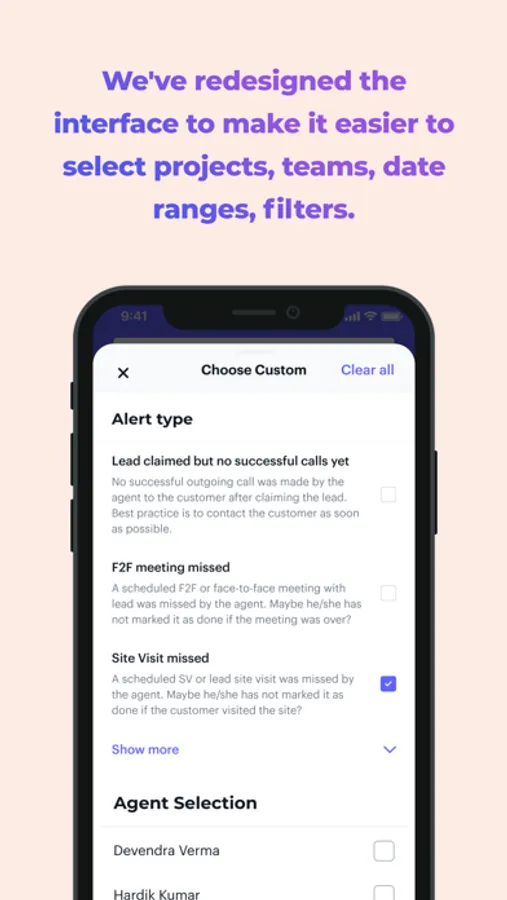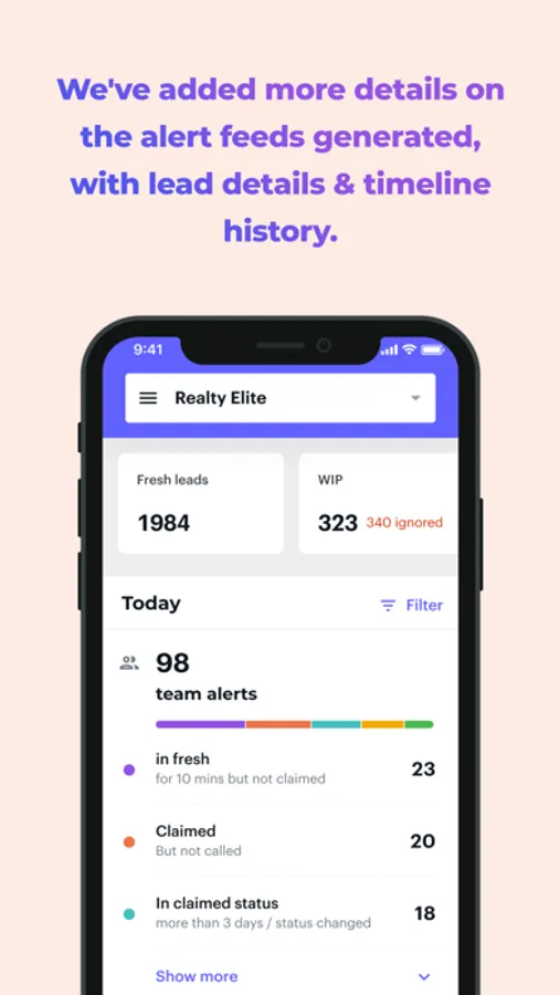 Detailed information on the leads and related lead events which need your team's attention. With lead details and timeline history.