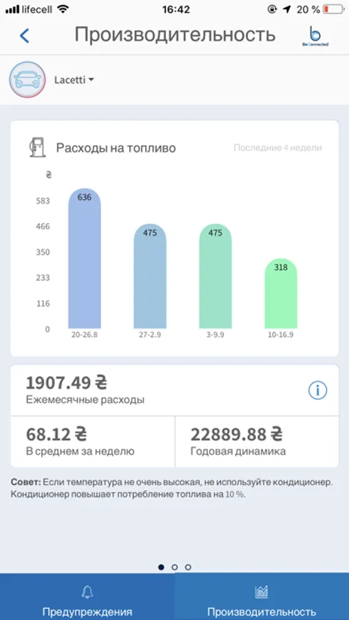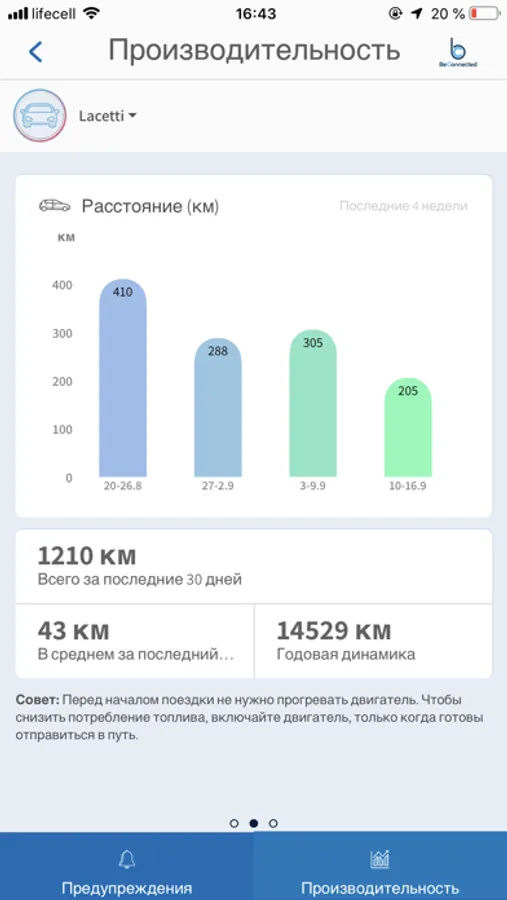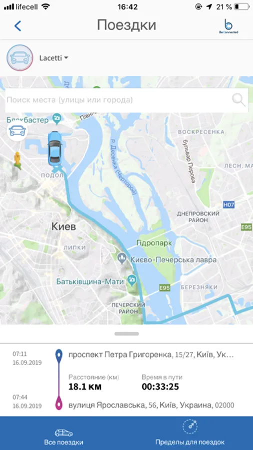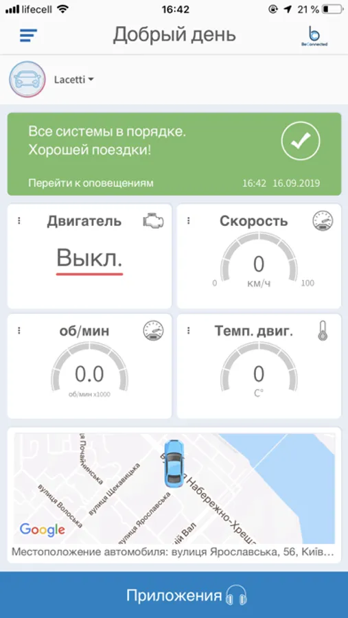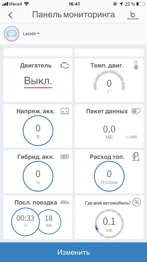 - данные об автомобиле в онлайн режиме: текущая скорость, обороты двигателя, напряжение аккумулятора, состояние двигателя/зажигание, потребление топлива, температура двигателя и др.;