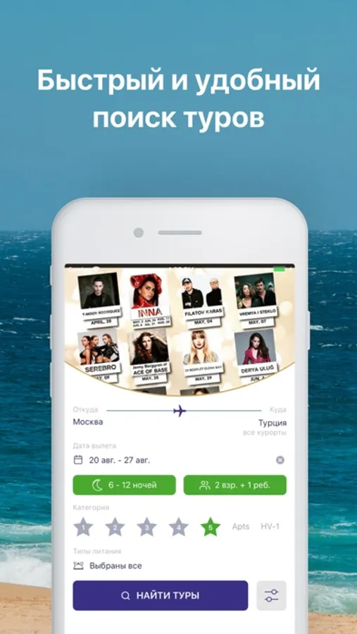 Данное приложение отличается удобством в использовании, горящие туры с его помощью искать очень легко и просто.