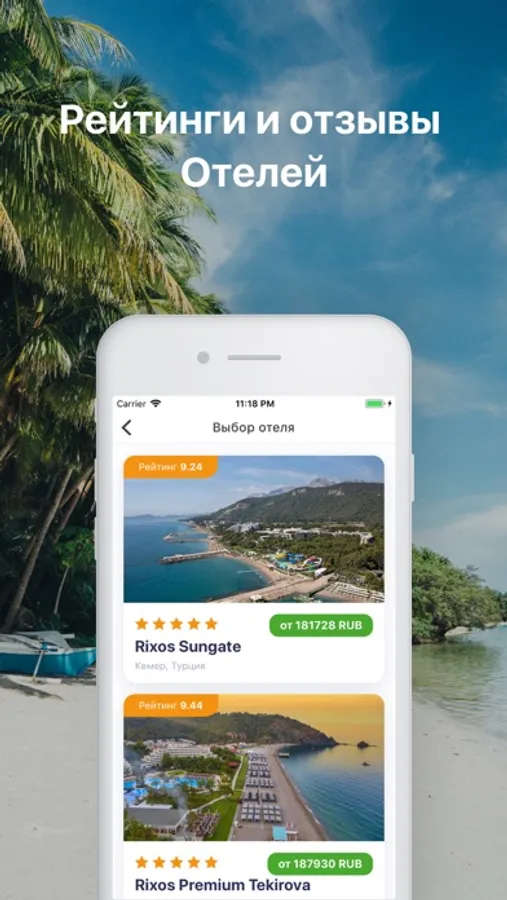• В приложении есть специальные предложения по горящим турам, путевки по ним предлагаются по минимальным ценам, и эти спецпредложения тщательно отбираются нашими менеджерами.