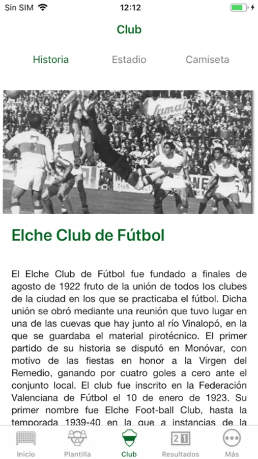 Esta es la primera app dedicada al Elche CF exclusivamente. Podrás acceder a noticias, plantilla, resultados y más cosas que descubrirás.